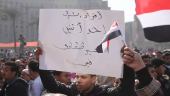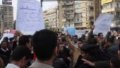 لافتة ٣ في الخلفية: لا للمحاكمات العسكرية، نعم للدولة المدنية