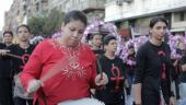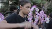 Girls drumming during Maspero anniversary march